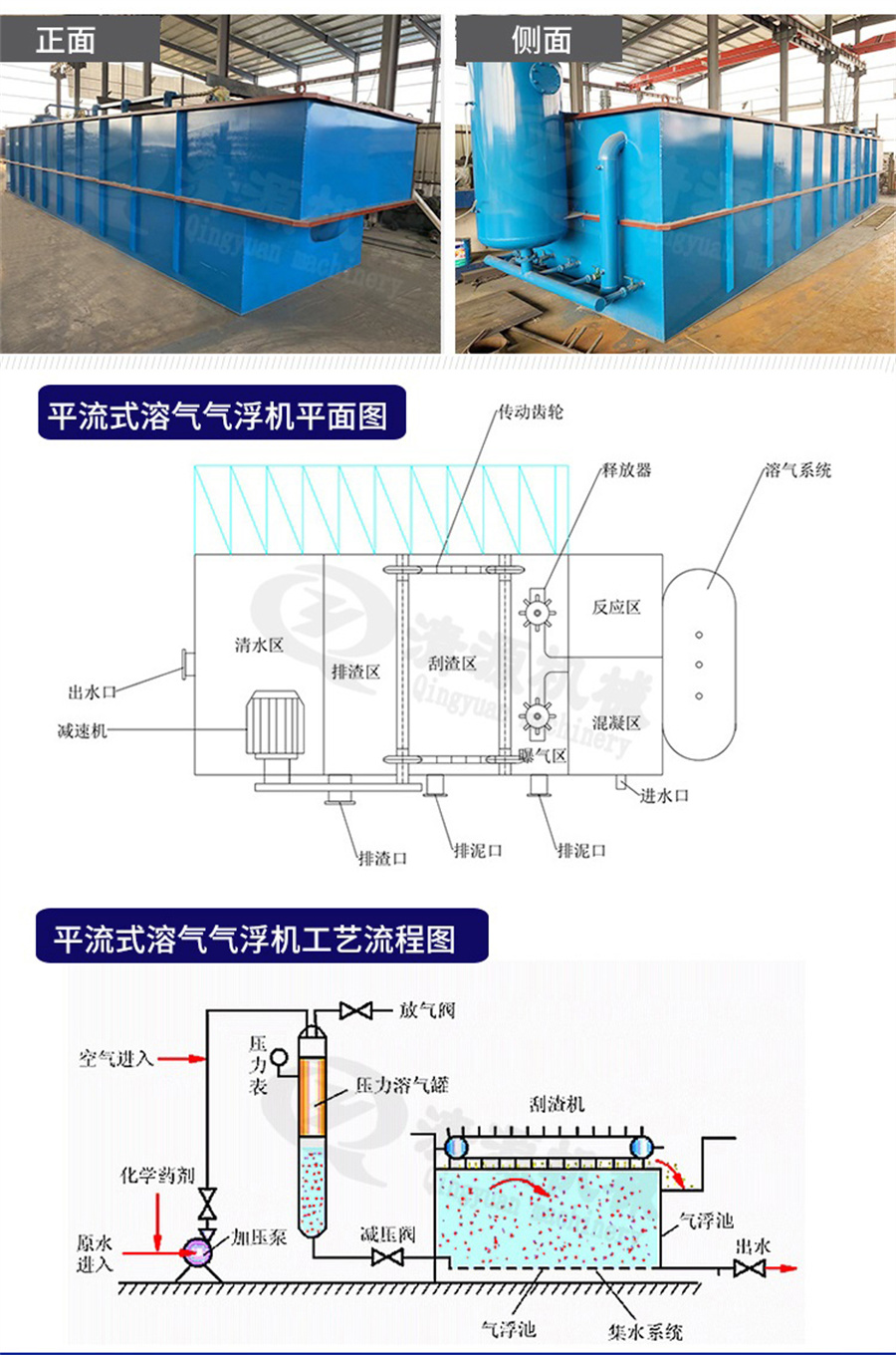 平流式溶气气浮机是污水处理行业常用的一种固液分离设备,能够有效的去除污水中的悬浮物、油脂、胶类物质,是污水前期处理的主要设备。