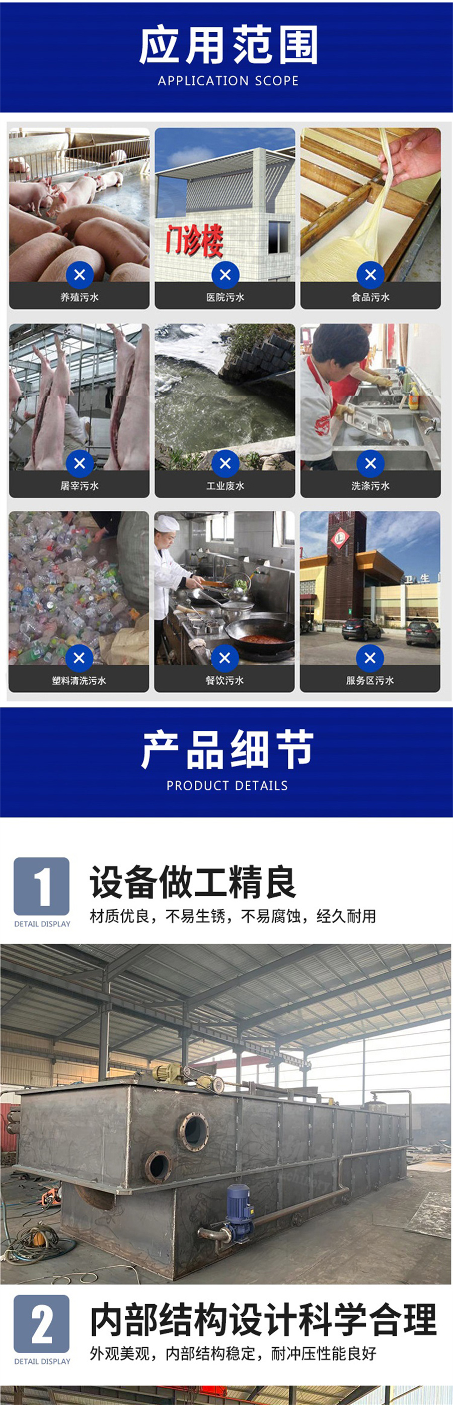 1.用于去除污水中固体悬浮物、油脂和各种胶状物,如:石化、煤矿、造纸、印染、屠宰、酿造等工业企业的污水处理;