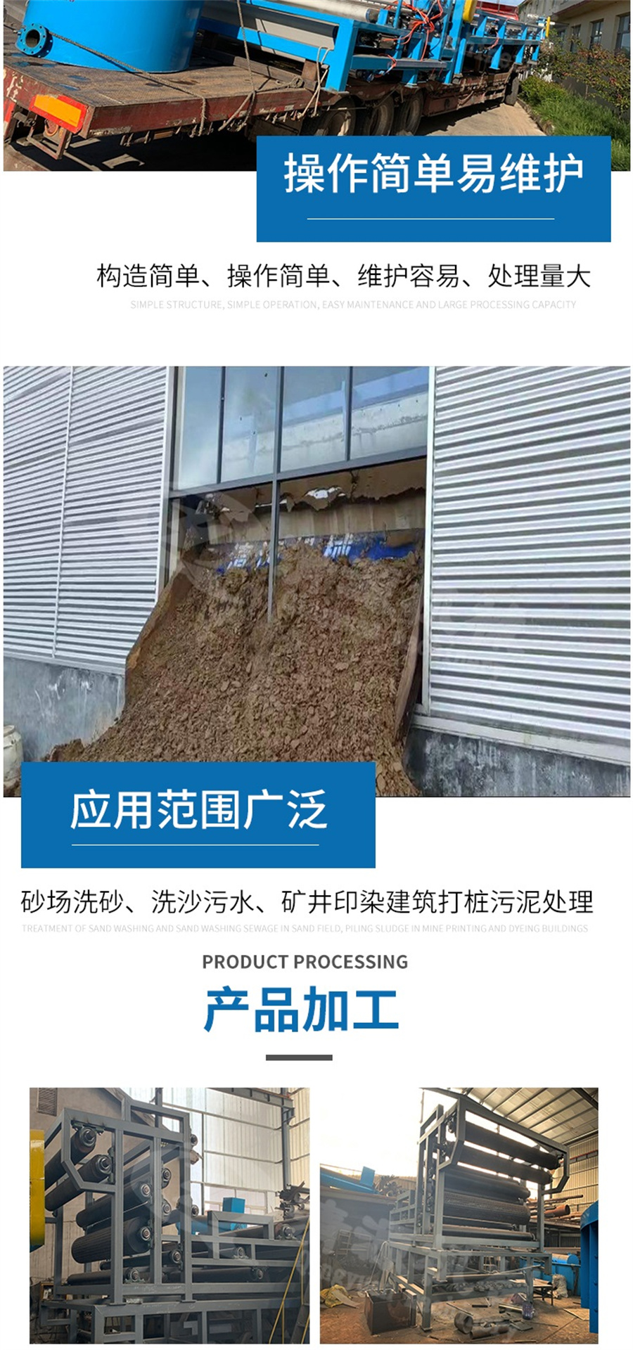 三网带式压滤机广泛应用于城市生活污水、纺织印染、电镀、造纸、皮革、酿造、食品加工、洗煤、石油化工、化学、冶金、制药、陶瓷等行业的污泥脱水处理,也适用于工业生产的固分离或液体浸出工序。