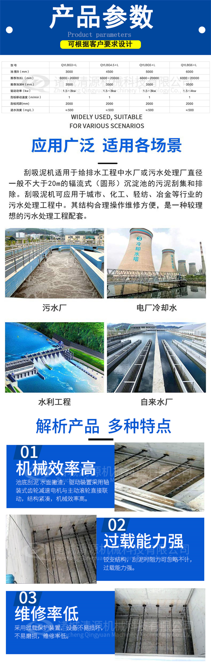 此外,我公司还生产半桥式周边传动刮泥机、地埋式污水处理设备、气浮机、污泥压滤机、造纸设备等其他设备,欢迎订购联系!