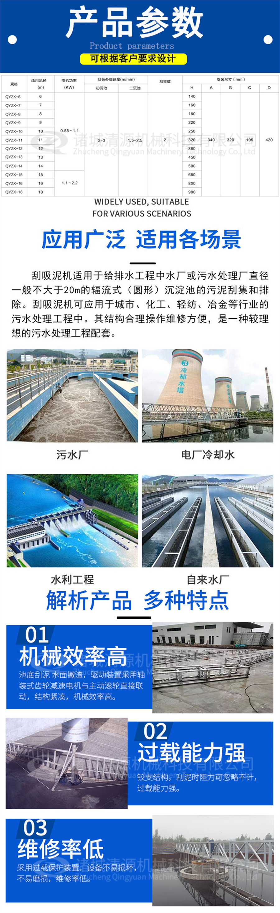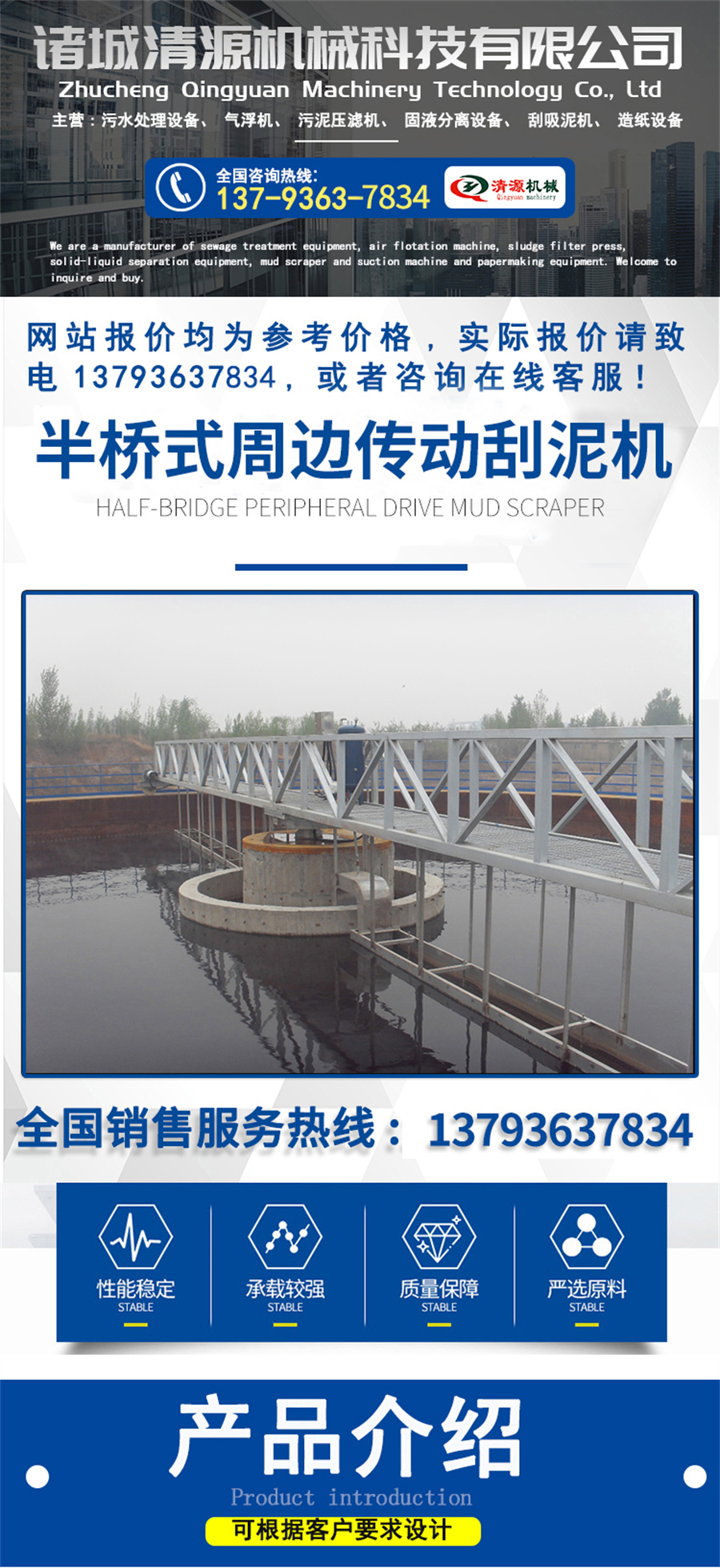 我公司还生产全桥式周边传动刮泥机、地埋式污水处理设备、气浮机、污泥压滤机、固液分离设备、造纸设备等其他设备,欢迎订购联系!