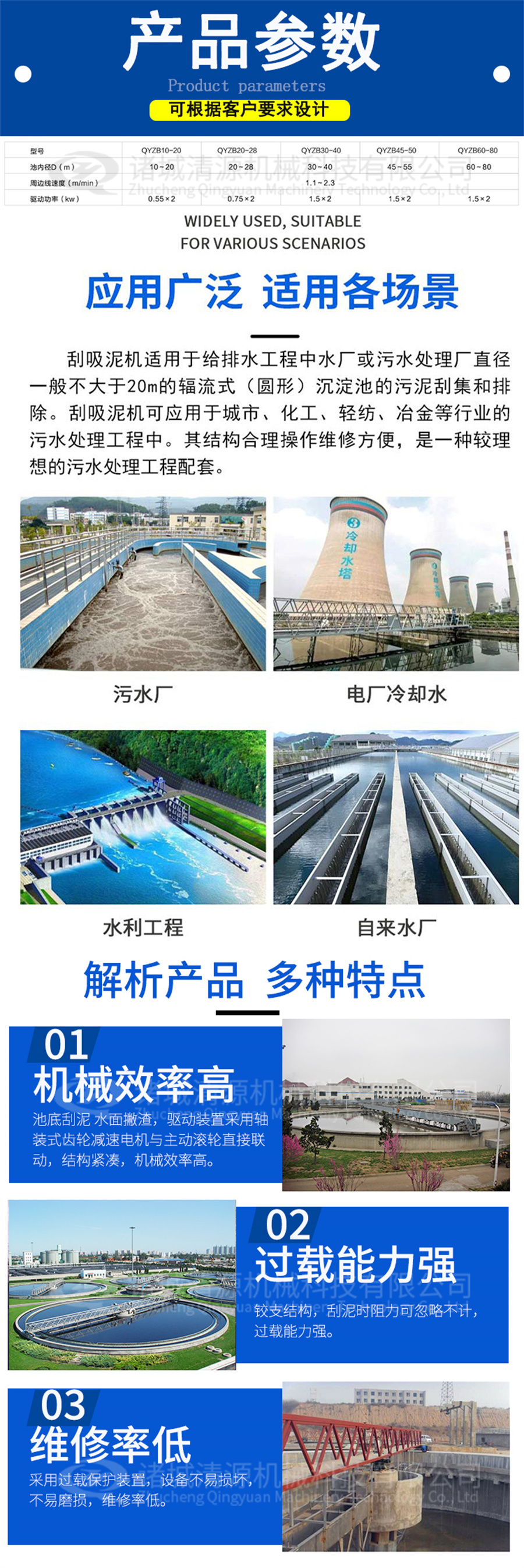 此外,我公司还生产中心传动刮泥机、地埋式污水处理设备、气浮机、污泥压滤机、造纸设备等其他设备,欢迎订购联系!