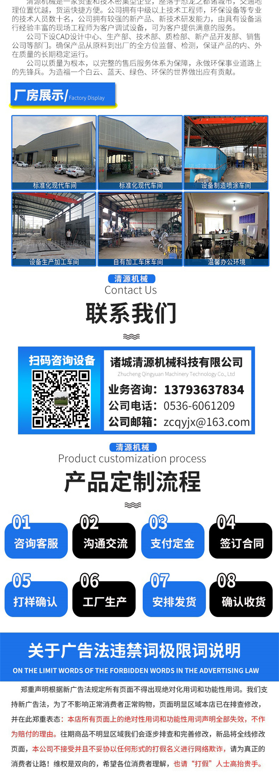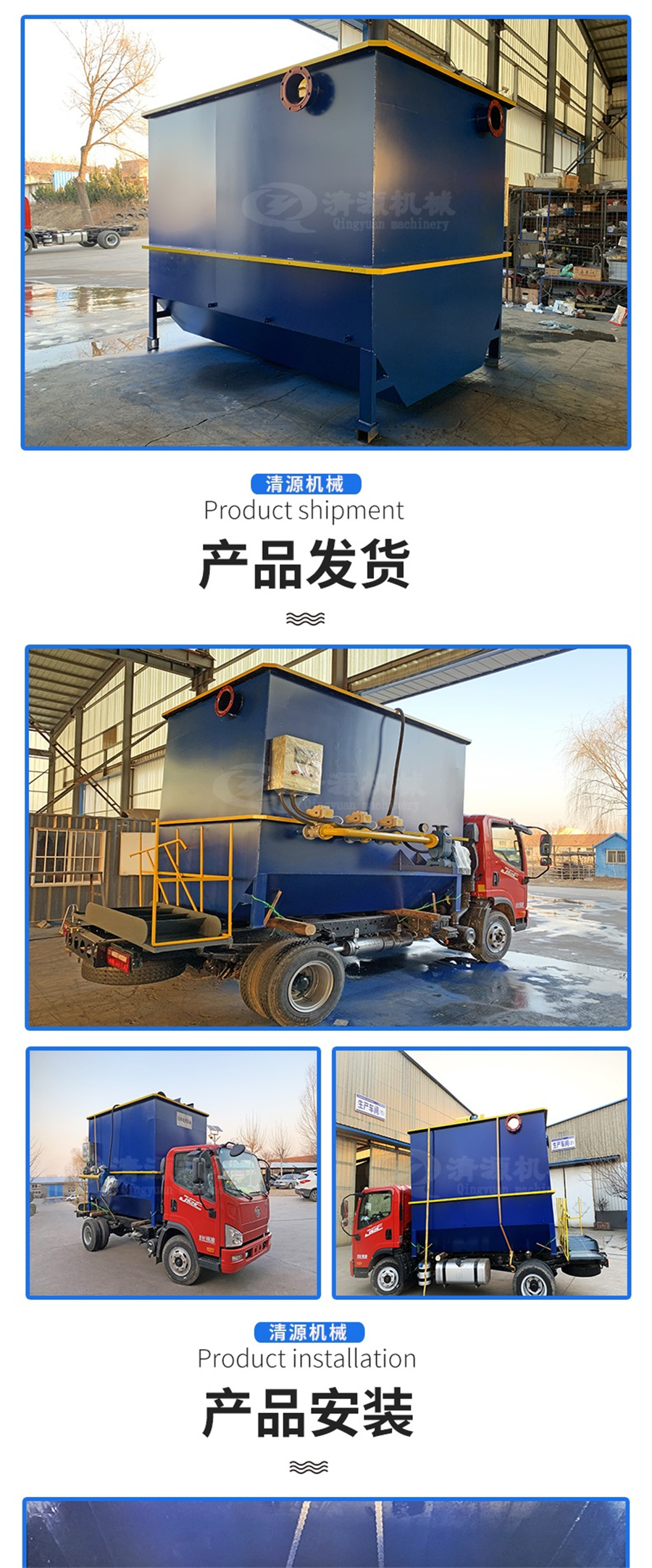 诸城清源机械科技有限公司生产的纤维转盘过滤器由中心转鼓、转盘、反洗系统和配套控制电气系统等组成。转盘固定在中心转鼓周围,并与中心转鼓具有连通孔。原水(污水)由中心转鼓的一端开口流入转鼓内,并通过连通孔进入各转盘,转盘两侧装有过滤布,过滤布为不锈钢丝或聚酯丝编织而成,过滤孔径更小可达10μm。原水通过过滤布过滤后,清水流出过滤布,从过滤水出口排出系统外。随着过滤的进行,过滤布内侧的截留杂质不断增加,过滤压差随之增加,透过滤布的水量减小。当杂质堆积到程度,中心转鼓液位达到设定值,需要进行反洗,将过滤布内侧堆积的杂质反洗出。反洗水泵抽取透过过滤布的清水,喷洒到过滤布外侧,将过滤布内侧的截留杂质冲洗下来,冲洗后污水掉落在接液盘内,然后排出装置外。反洗时转盘旋转,反洗水喷洒不同角度的过滤布,直至转盘旋转一周,过滤布全部经过清洗,反洗停止,重新进入静止过滤过程,直至再次进行反洗。