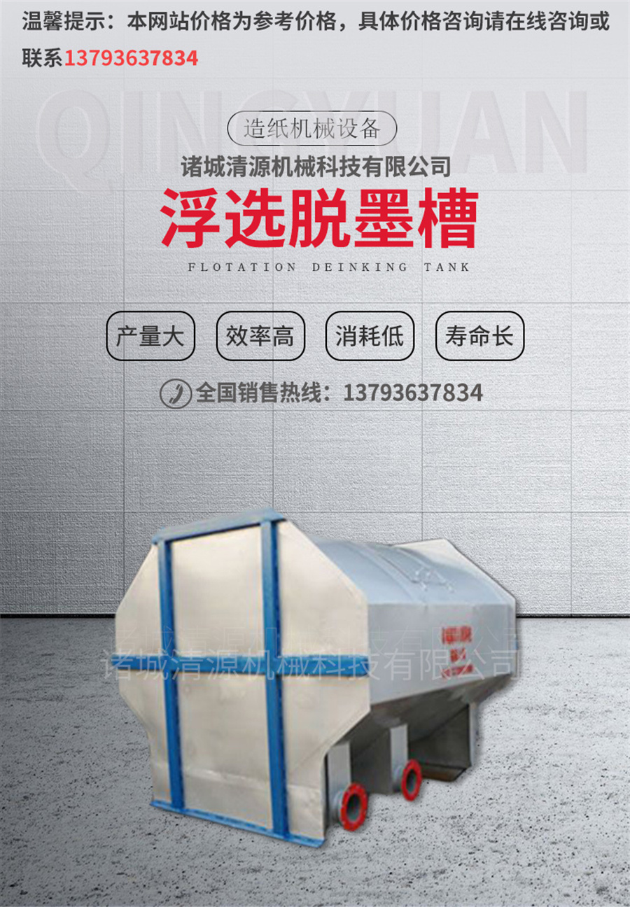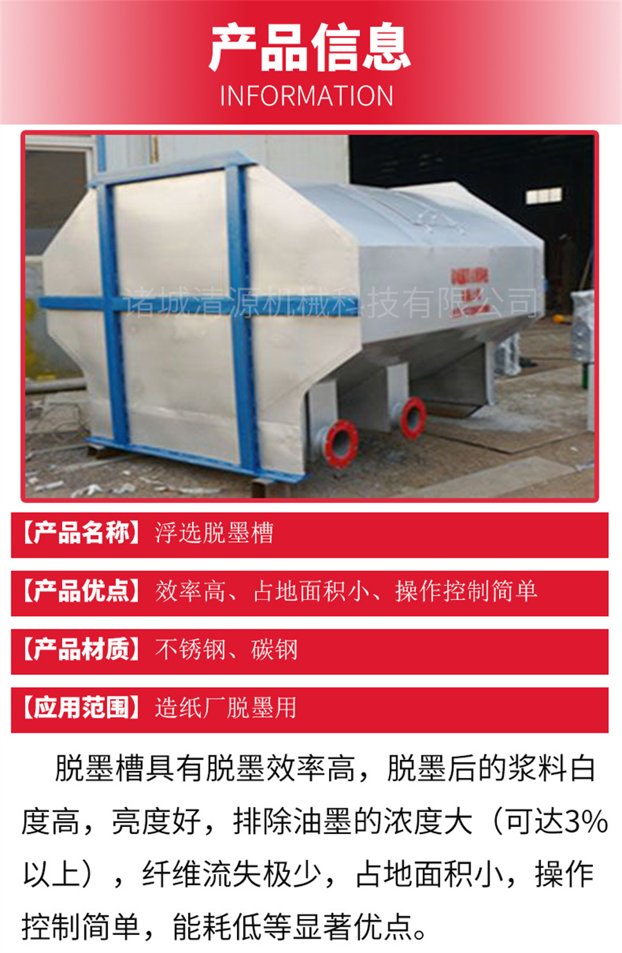 此外,我公司不仅生产脱墨槽,还生产浮选机组、地埋式污水处理设备、气浮机、污泥压滤机、造纸设备等其他设备,欢迎咨询订购!